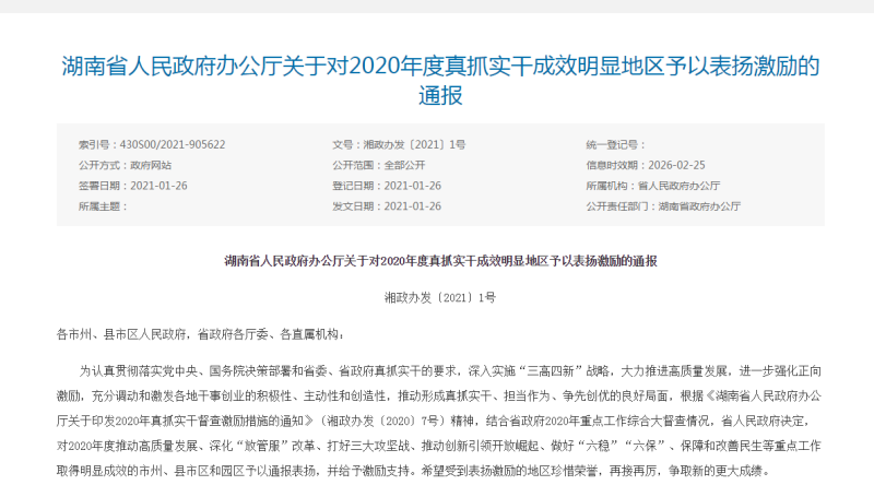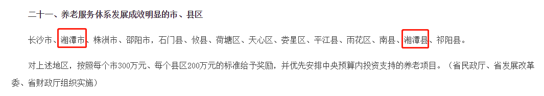 年前,湖南省人民政府第七次全體會議在長沙召開,會議公布了2020年度真抓實干成效明顯地區,予以表揚激勵的名單及激勵措施。其中,湘潭市、湘潭縣被評為養老服務體系發展成效明顯的市、縣區。