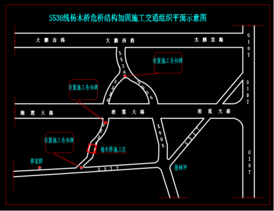 二、交通管制路段:S536線湘蓮大道互通路口至郭家橋S536與S327交匯處,楊木橋橋梁中心樁號K8+334。