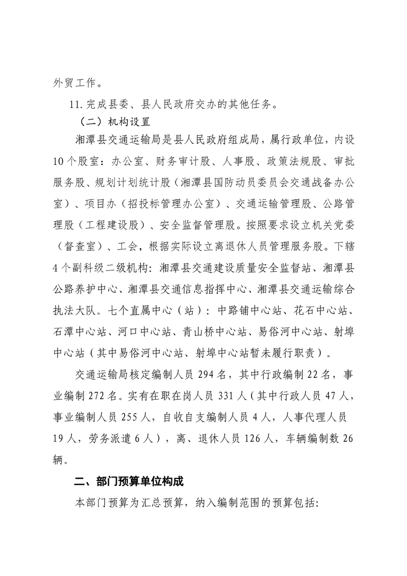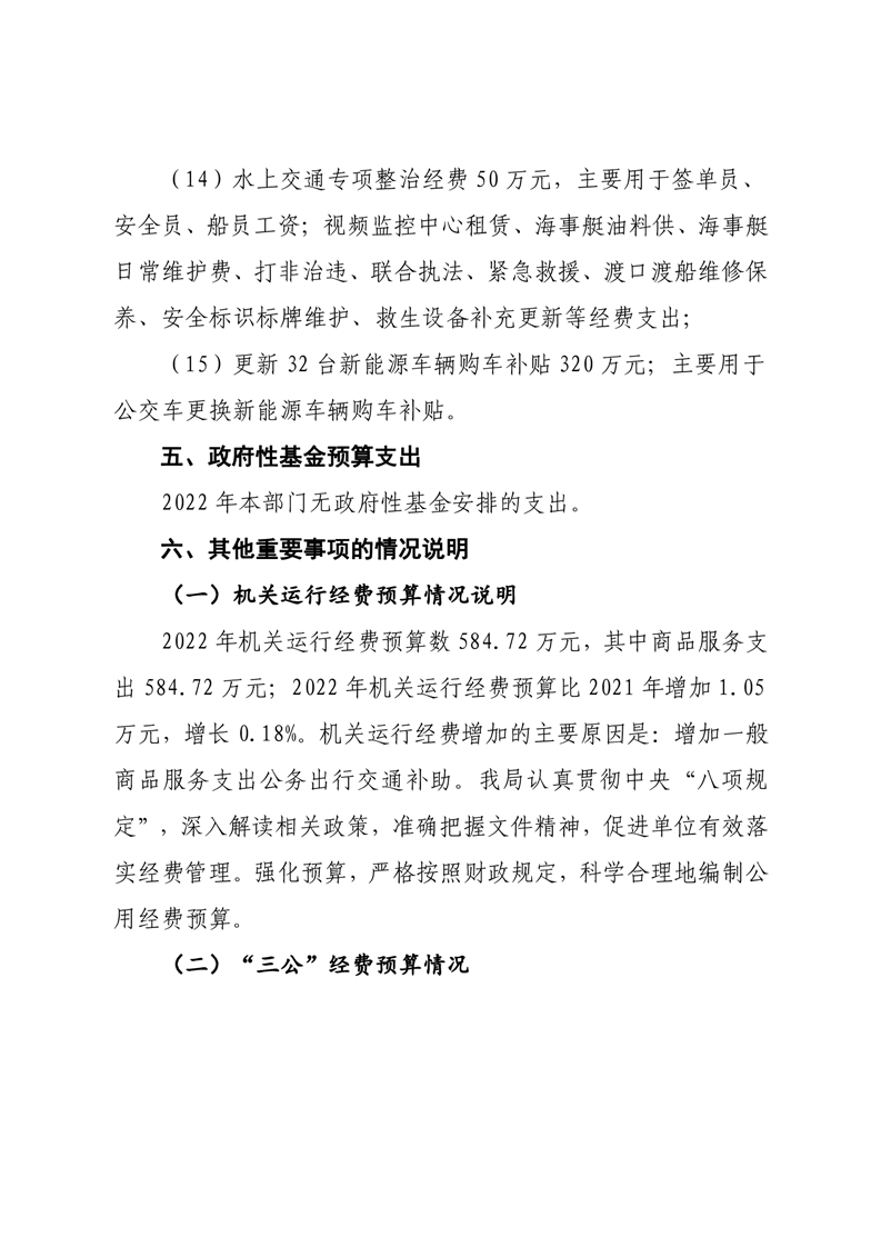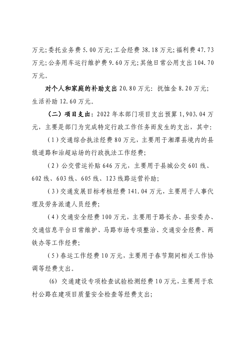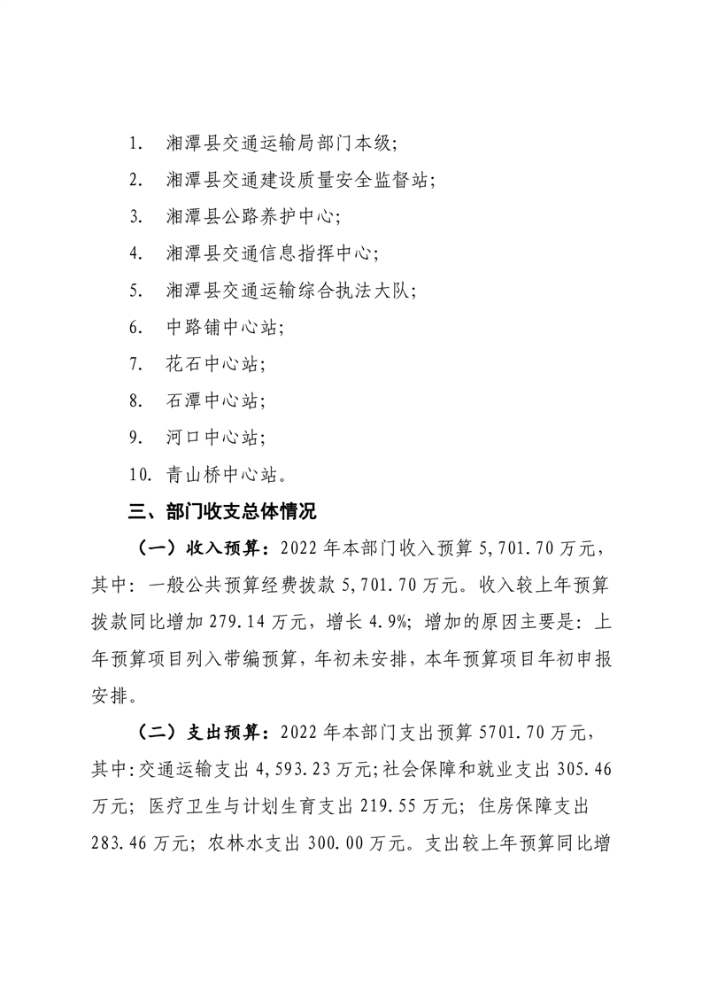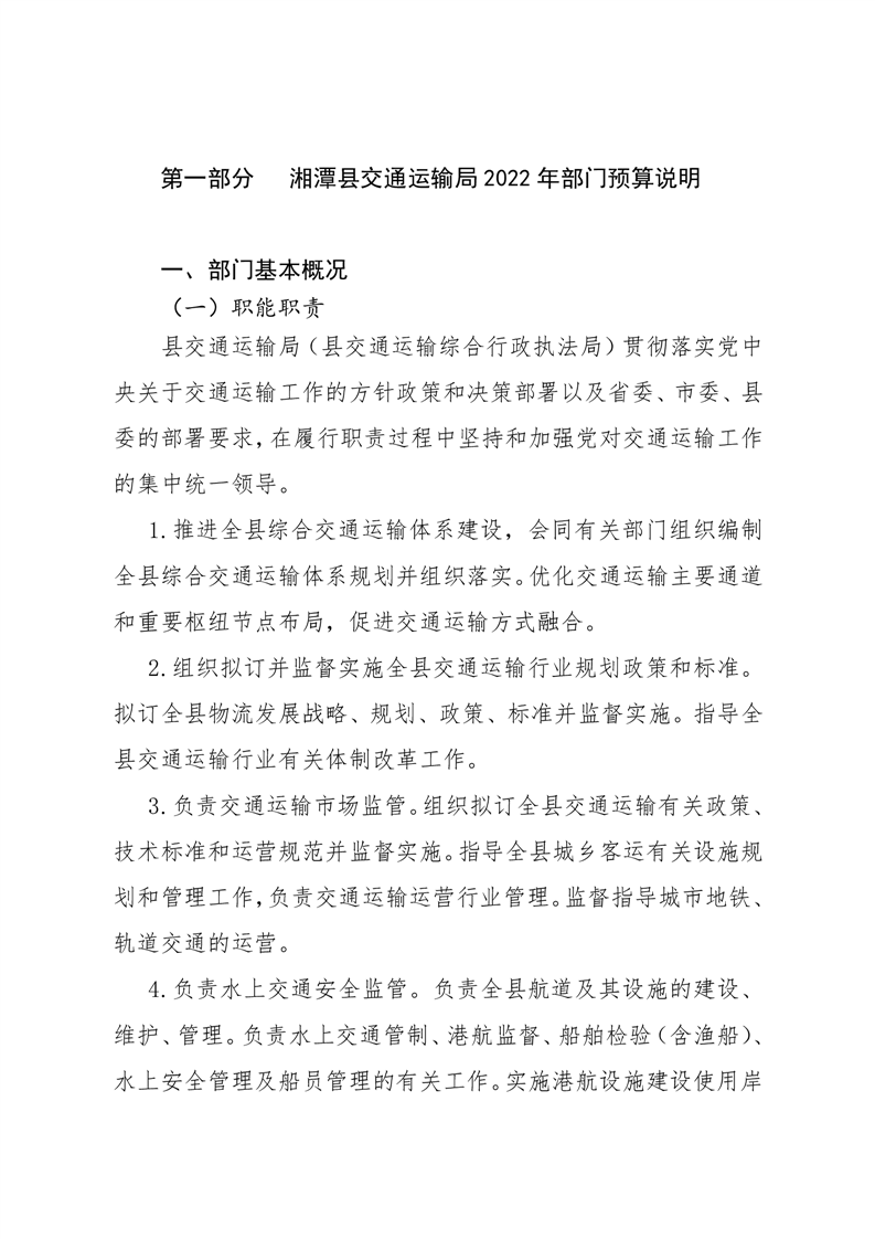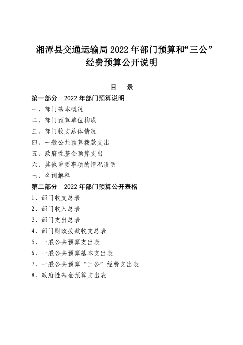 湘潭縣交通運輸局2022年部門預算和“三公”經費預算公開編制說明