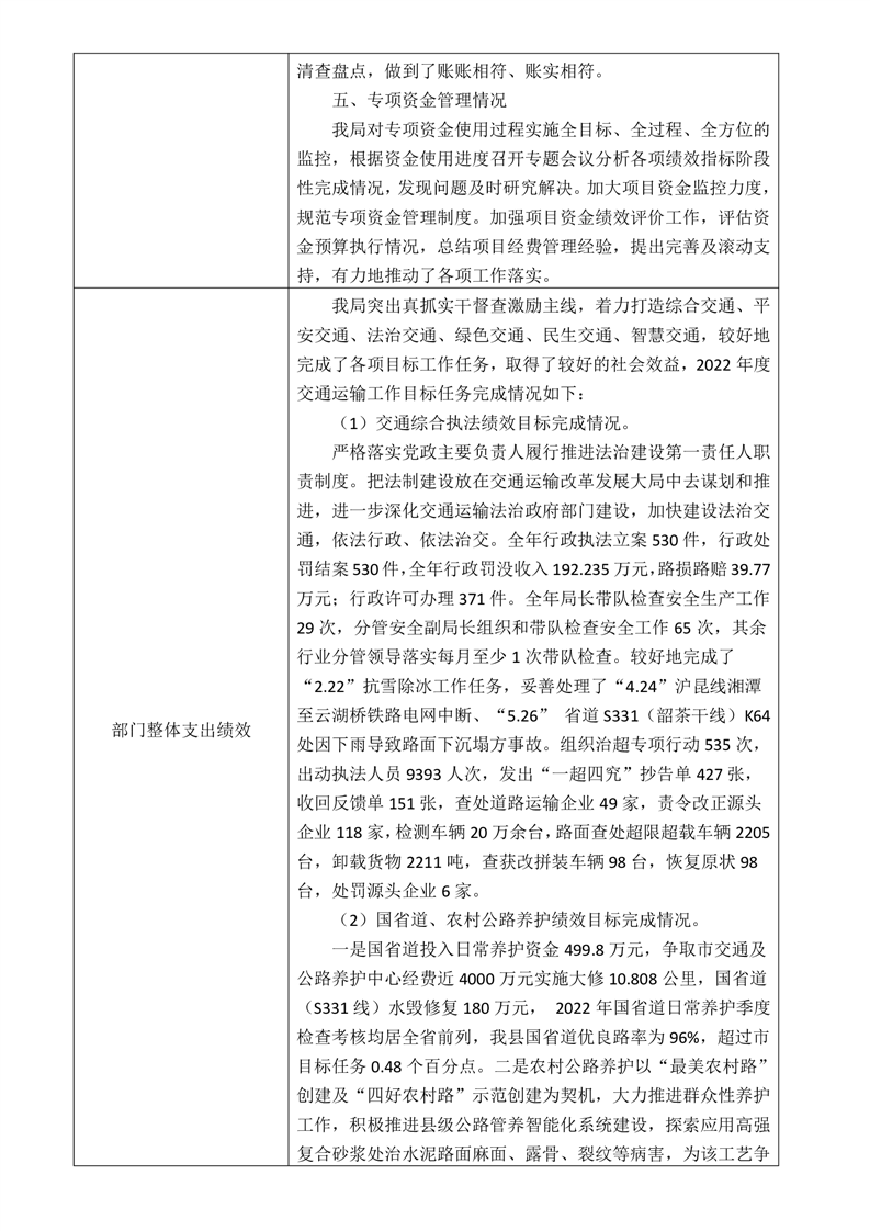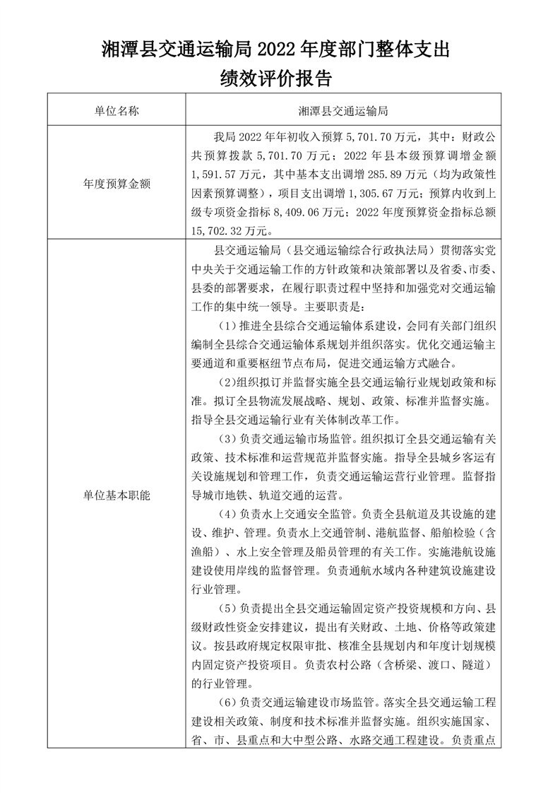 湘潭縣交通運輸局2022年部門整體績效自評報告