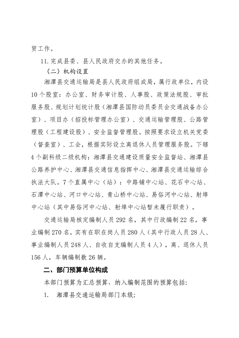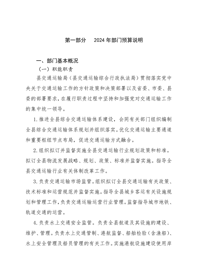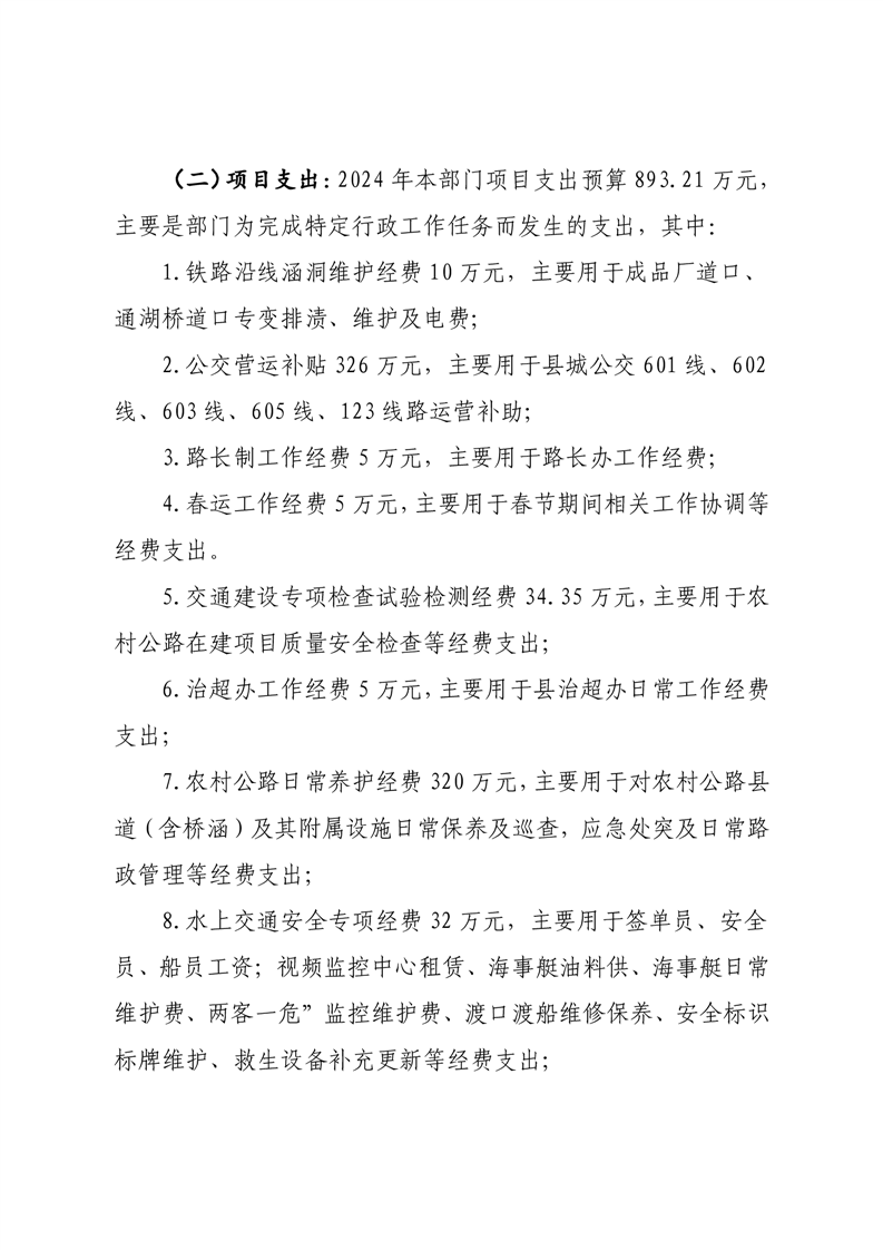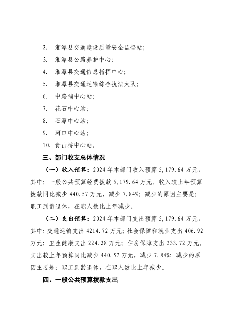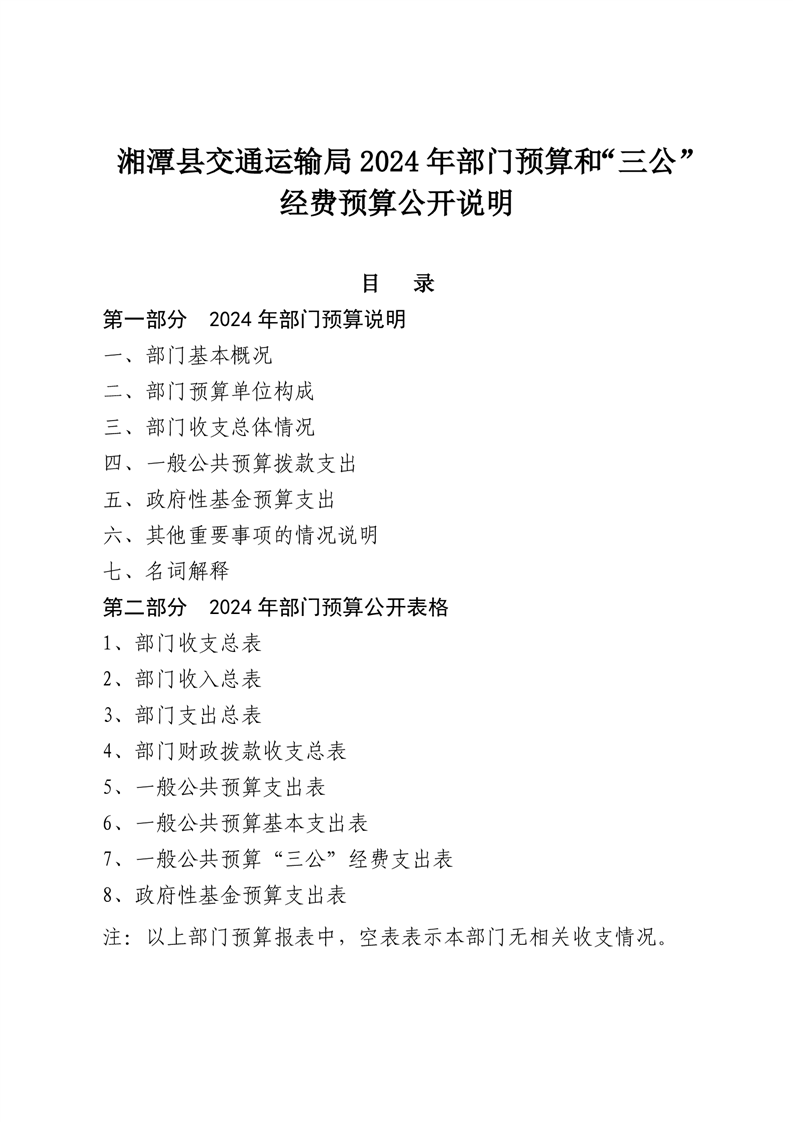 湘潭縣交通運輸局2024年部門預算和“三公” 經費預算公開說明