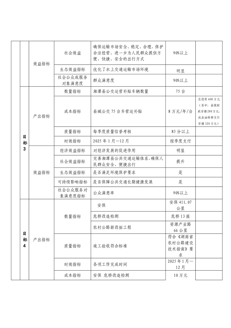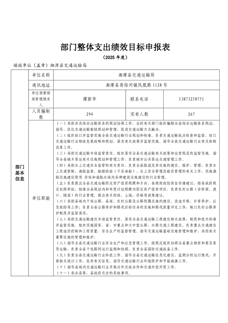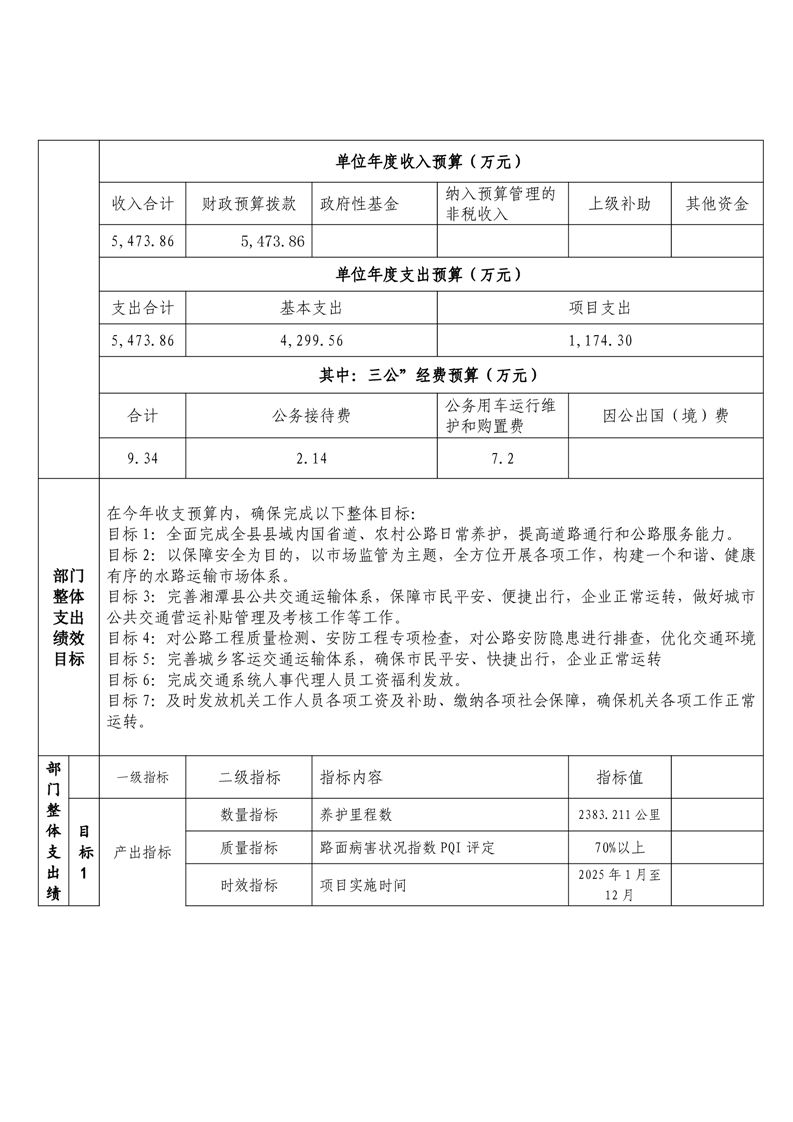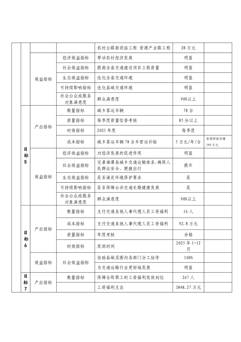 2025年湘潭縣交通運輸局整體支出績效目標申報