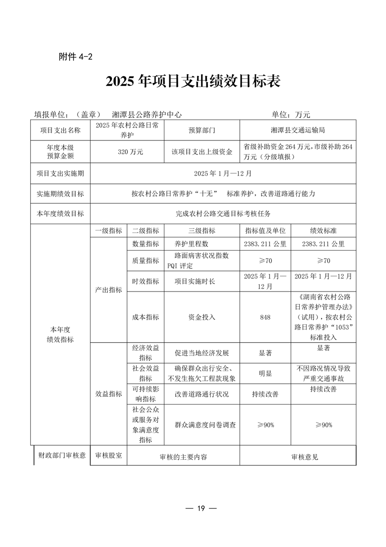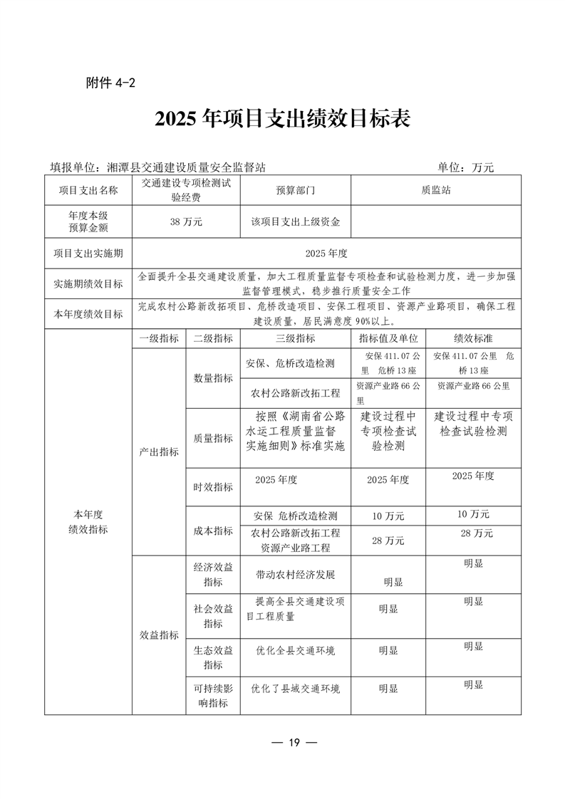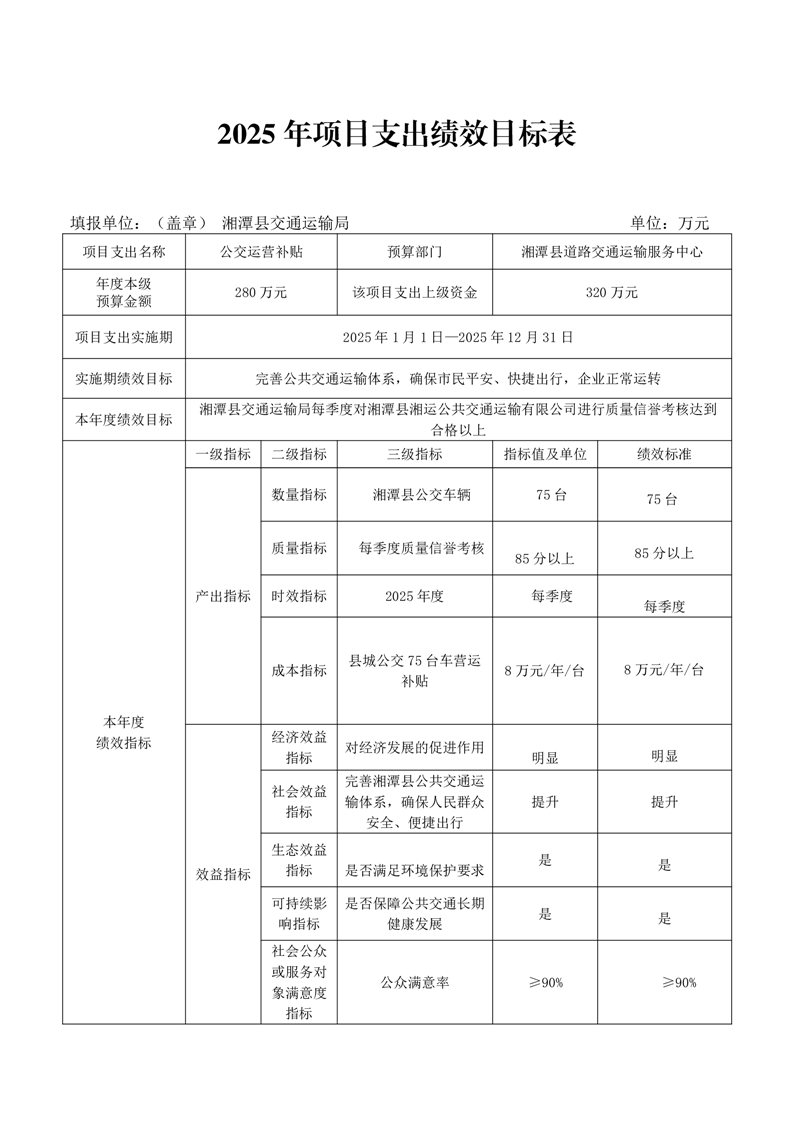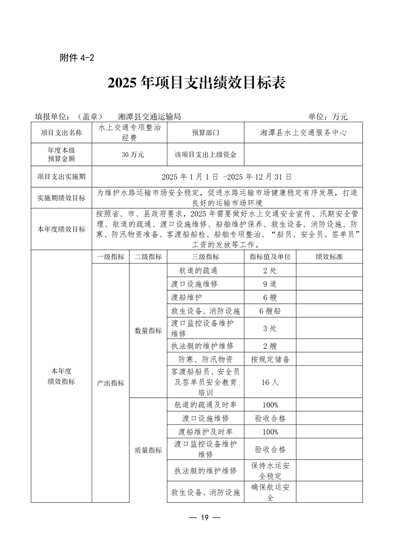 2025年湘潭縣交通運輸局整體支出績效目標申報