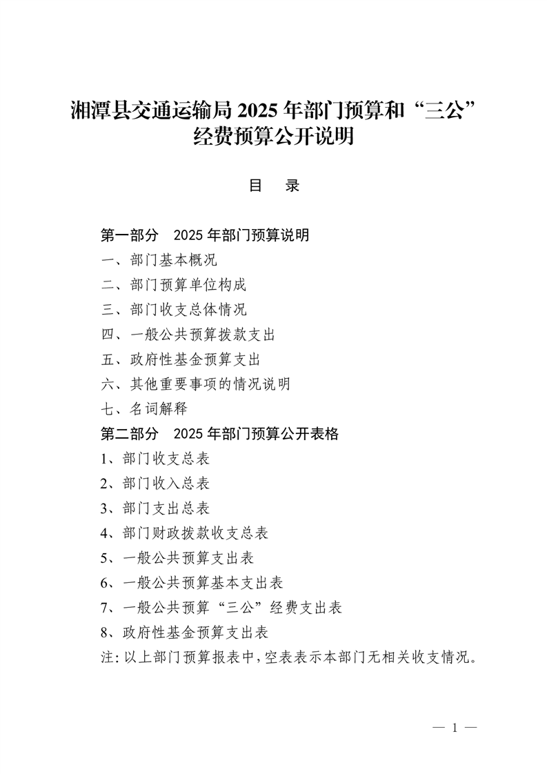 湘潭縣交通運(yùn)輸局2025年部門預(yù)算和“三公”經(jīng)費(fèi)預(yù)算公開說明