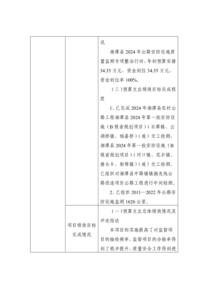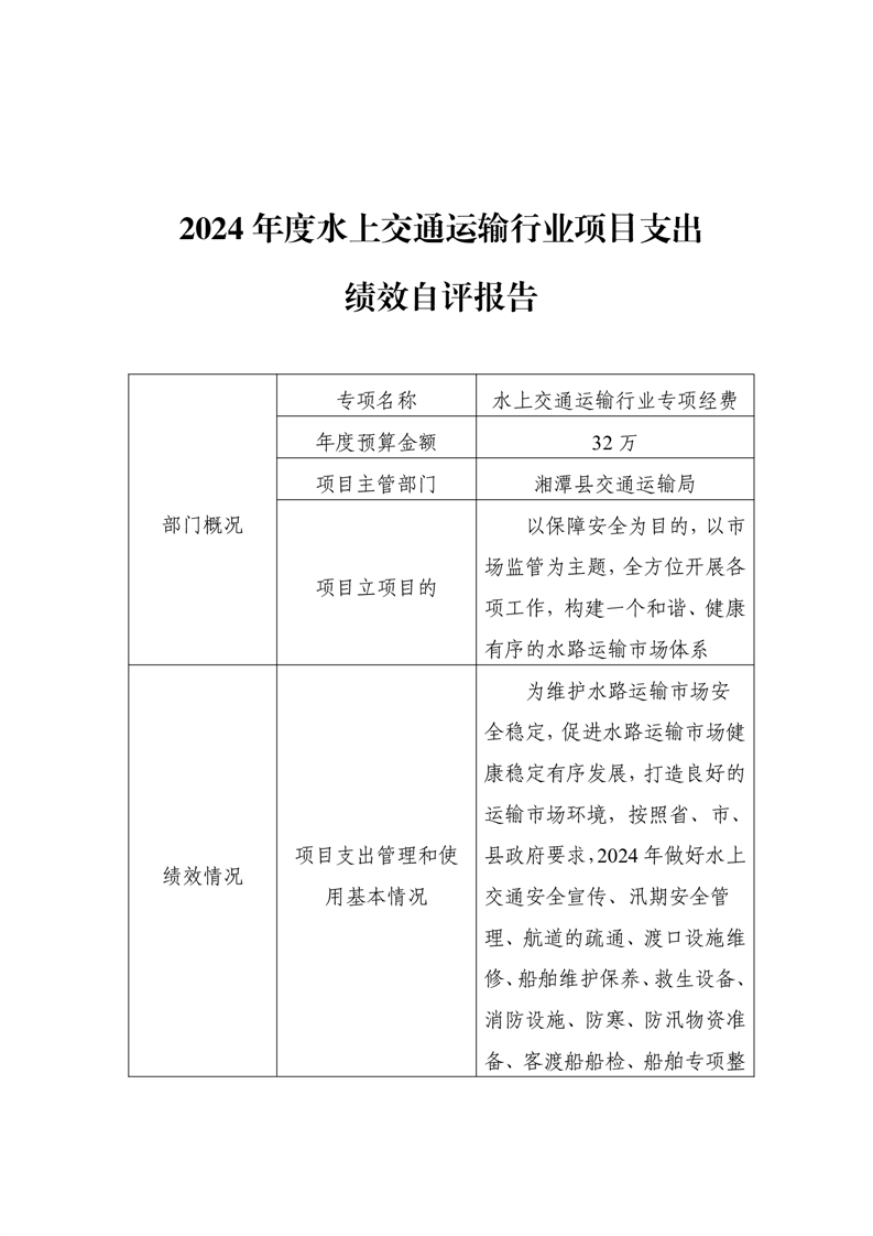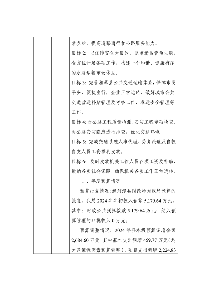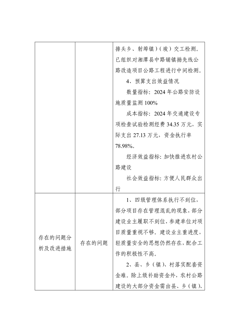 湘潭縣交通運輸局2024年度部門整體預算績效評價報告