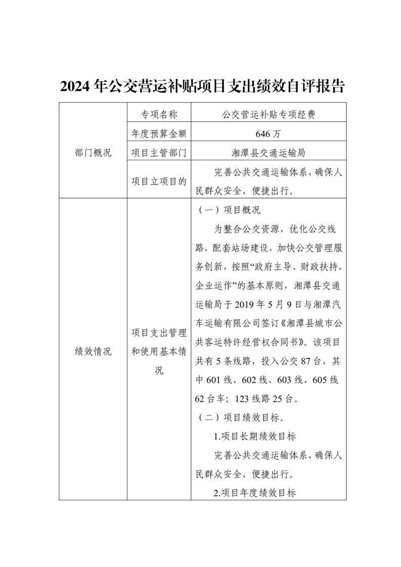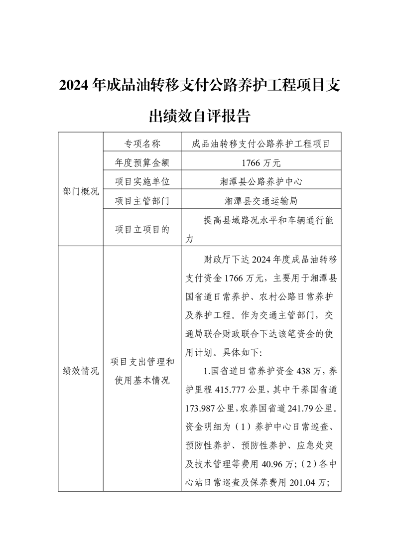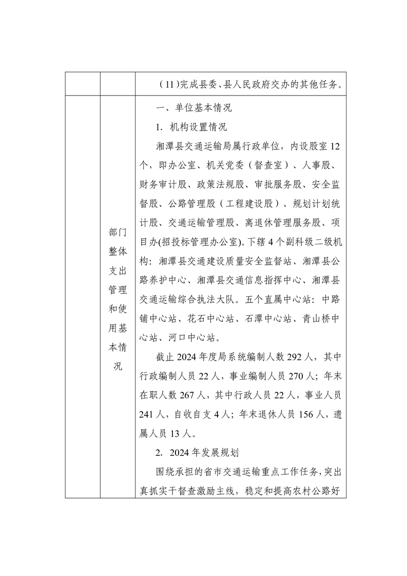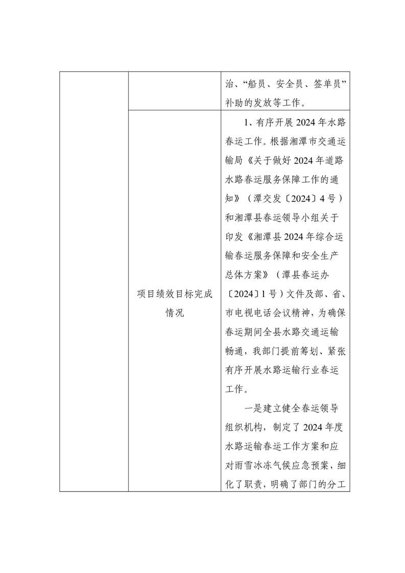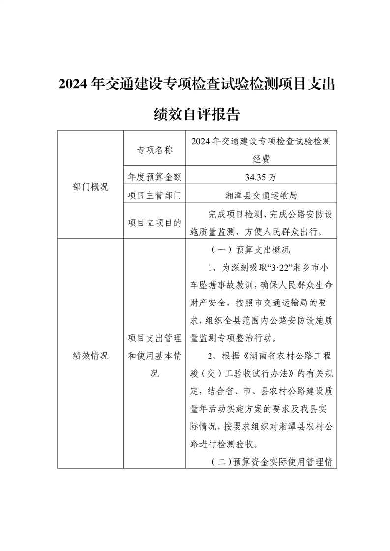 湘潭縣交通運輸局2024年度部門整體預算績效評價報告