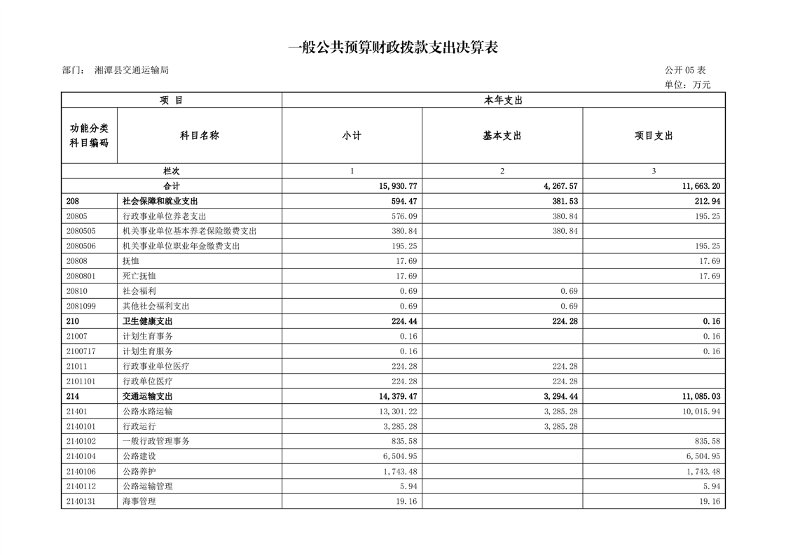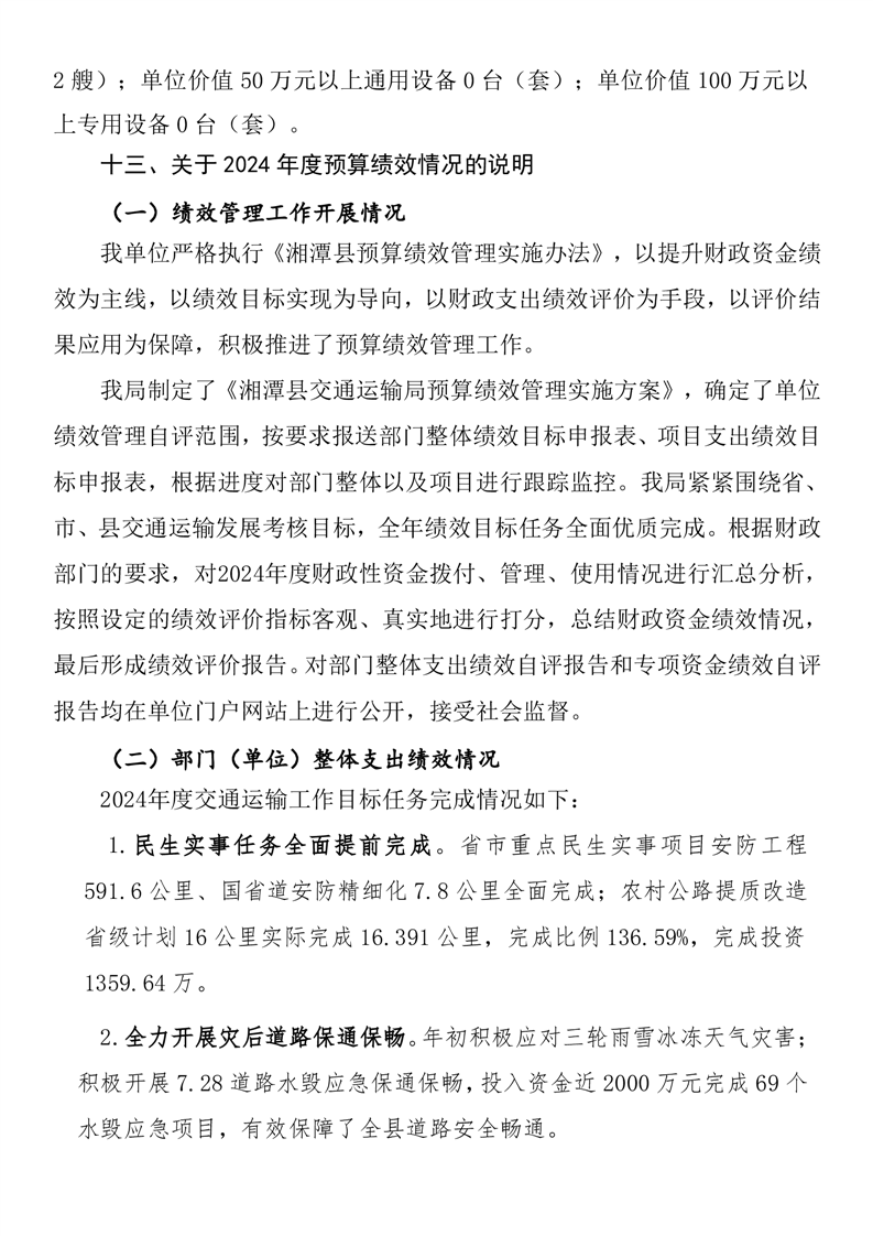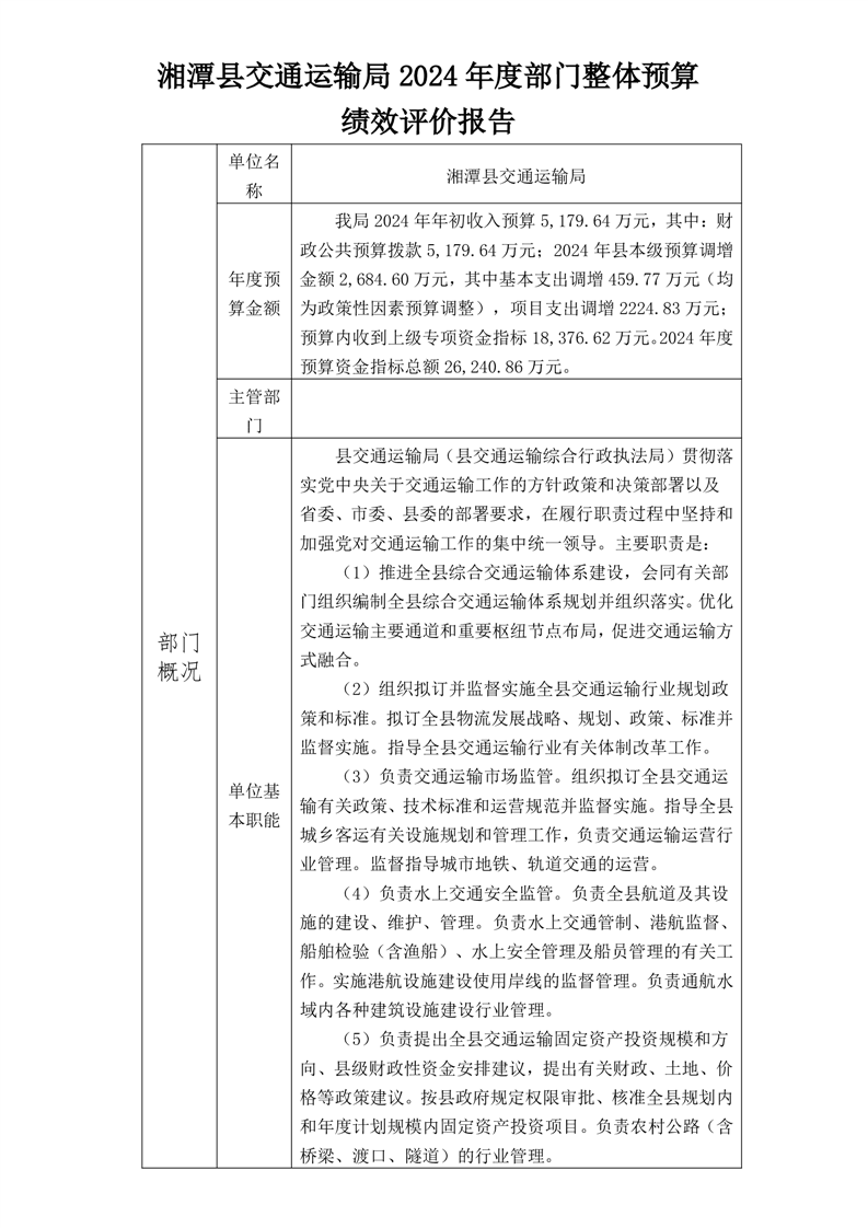 湘潭縣交通運輸局2024年度部門決算公開