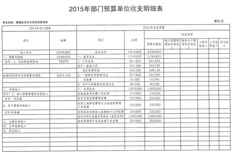 湘潭縣農(nóng)經(jīng)局2015年部門預(yù)算收支明細(xì)