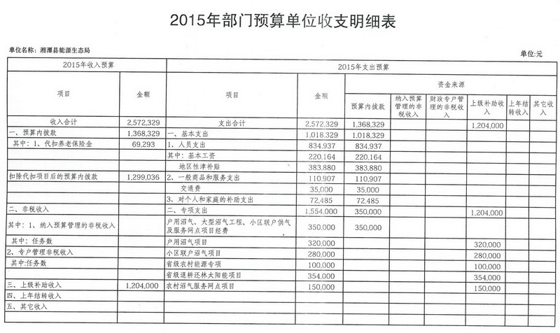 湘潭縣能源局2015年部門預算收支明細