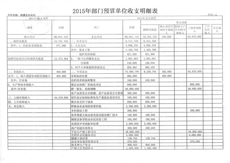 湘潭縣農(nóng)業(yè)局2015年部門預(yù)算收支明細(xì)