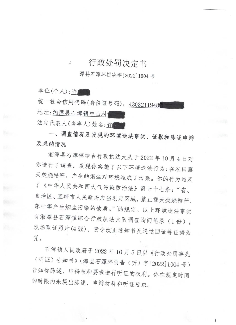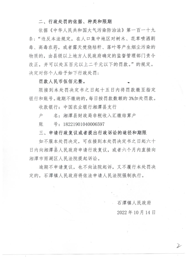 湘潭縣石潭鎮綜合行政執法大隊行政處罰決定書