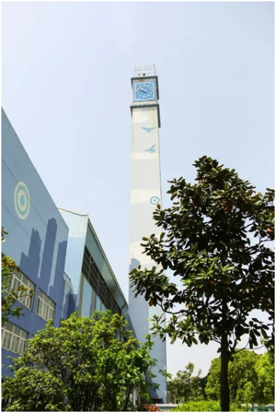 江蘇常州武進(jìn)區(qū)遙觀鎮(zhèn)劍湖村,有一座高高的廠房,外墻以藍(lán)白為主色,墻面繪有人、鳥(niǎo)、城市等自然、環(huán)保元素。外墻通過(guò)現(xiàn)代時(shí)尚環(huán)保的彩繪手法,呈現(xiàn)出一幅人類與大自然和諧相處、廠區(qū)與城市融為一體的畫面,廠房北側(cè)還有一個(gè)鐘樓,實(shí)際卻是個(gè)煙囪,因?yàn)閹缀蹩床坏綗煔猓愿緵](méi)把它與煙囪聯(lián)系起來(lái)。整個(gè)建筑乍一看,還以為是一座幼兒園。